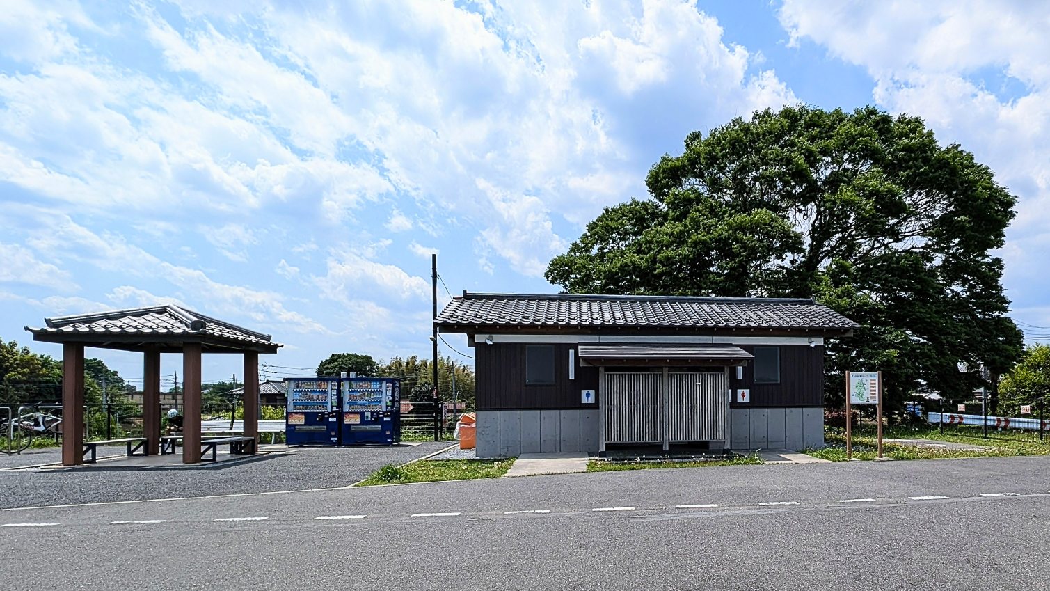 目的地は、ストリートビューで「松伏休憩所」と紹介されている休憩所で、東武アーバンパークラインの南桜井駅から 4.3km 程。ベンチ,飲み物自販機,公衆トイレ があり、自転車乗りの人達が立ち寄っていました。